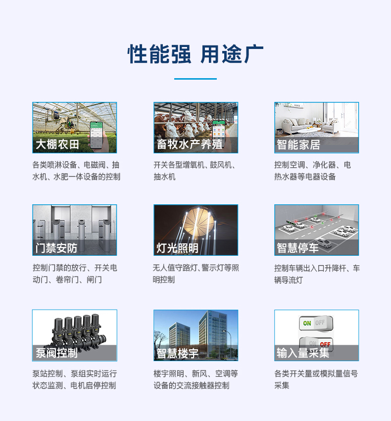 | 工作模式更改;继电器独立控制;继电器整体控制;开关量状态查询;调试信息查询;控制软件;支持各家组态软件;支持 Labview 等 | |||