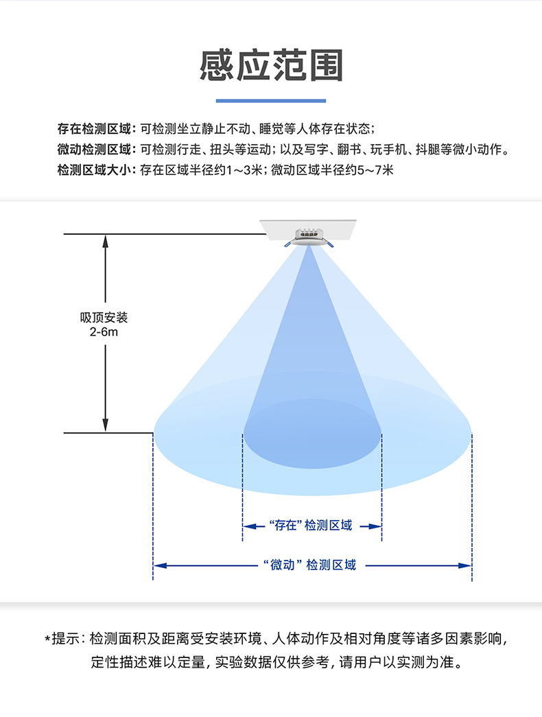 ·存在检测半径:1~3 m